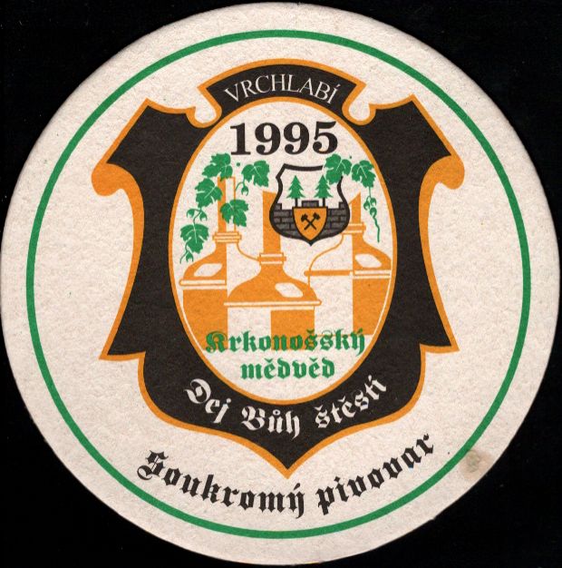 VRCHLABÍ 1995 krkonošský medvěd Dej Bůh štěstí Soukromý pivovar (PTMP-K-a)Skladem 1 ks20 Kč/ ks