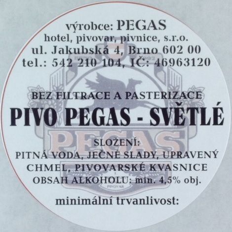 PIVO PEGAS - SVĚTLÉ (sudovka) (Pegas-Brno) (S)Skladem 5 ks15 Kč/ ks