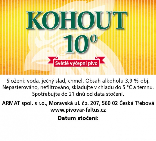 KOHOUT 10° Světlé výčepní pivo (sudovka) (Česká Třebová) (S)