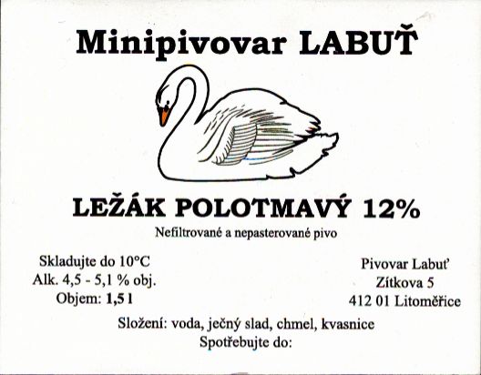 - Minipivovar LABUŤ LEŽÁK TMAVÝ 11% (1,5L) (Litoměřice) (S)