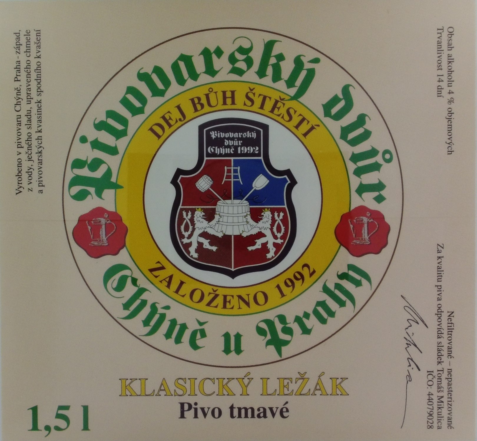 KLASICKÝ LEŽÁK Pivo tmavé (Chýně) (S)