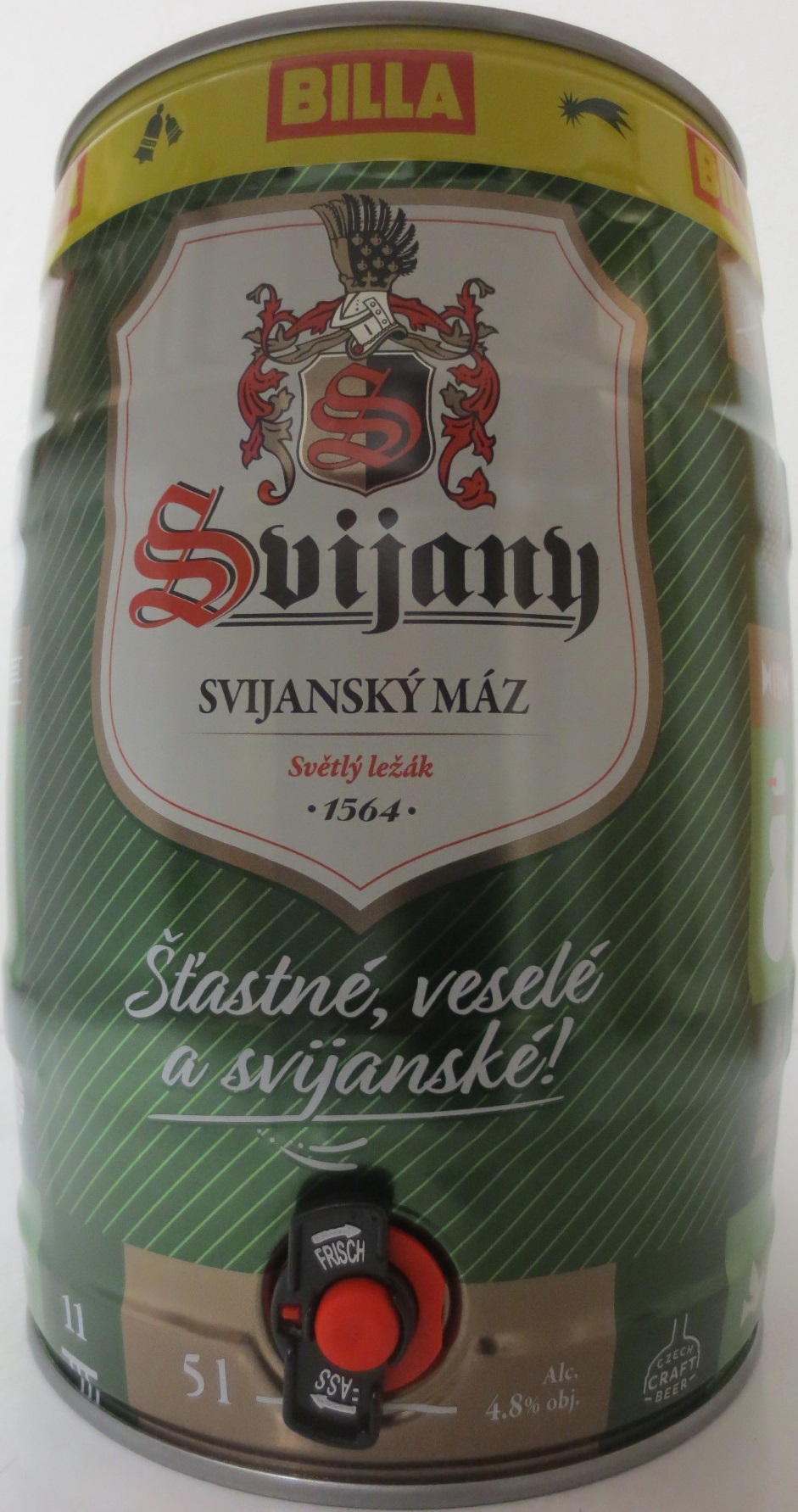 Svijany SVIJANSKÝ MÁZ - Světlý ležák .1564. Šťastné, veselé a Svijanské! - BILLA (5L) č.1