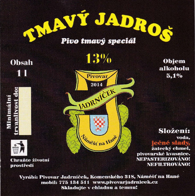 - TMAVÝ JADROŠ Pivo tmavý speciál (1L) (Náměšť na Hané Jadrníček) (S)