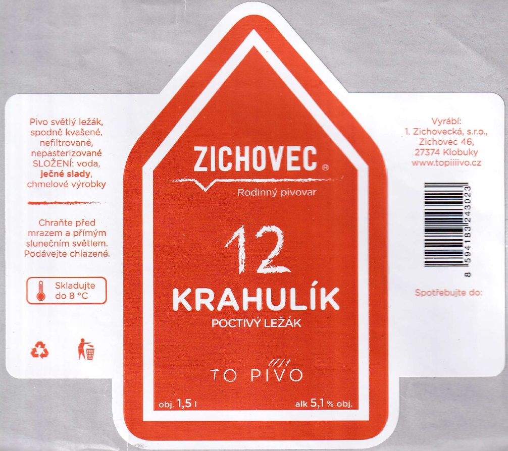 ZICHOVEC 12 KRAHULÍK POCTIVÝ LEŽÁK (1,5L) (S)Skladem 2 ks20 Kč/ ks